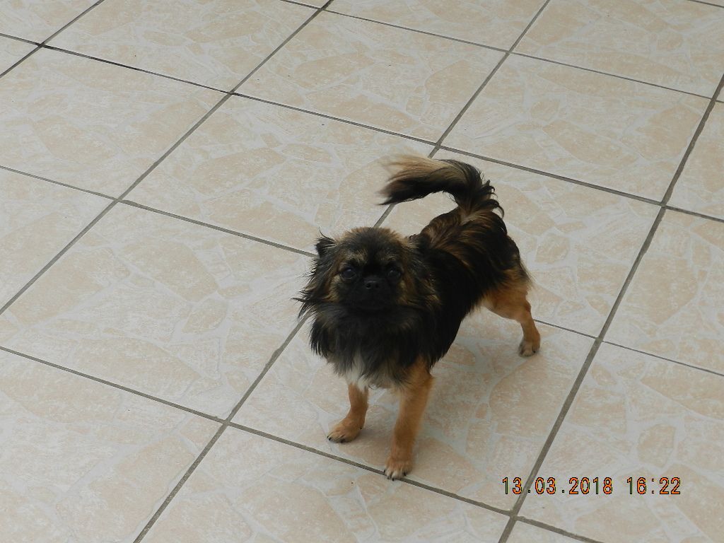 7 mois 5 incisives inferieur caractère a travailler petite fontanelle b stop nez 1 peu pincé bonne ossature poids de bébé testicule en place bonne attache de queue le dos vouté mais le chien ne se met pas en valeurattache de queue correcte crosise de l'avant